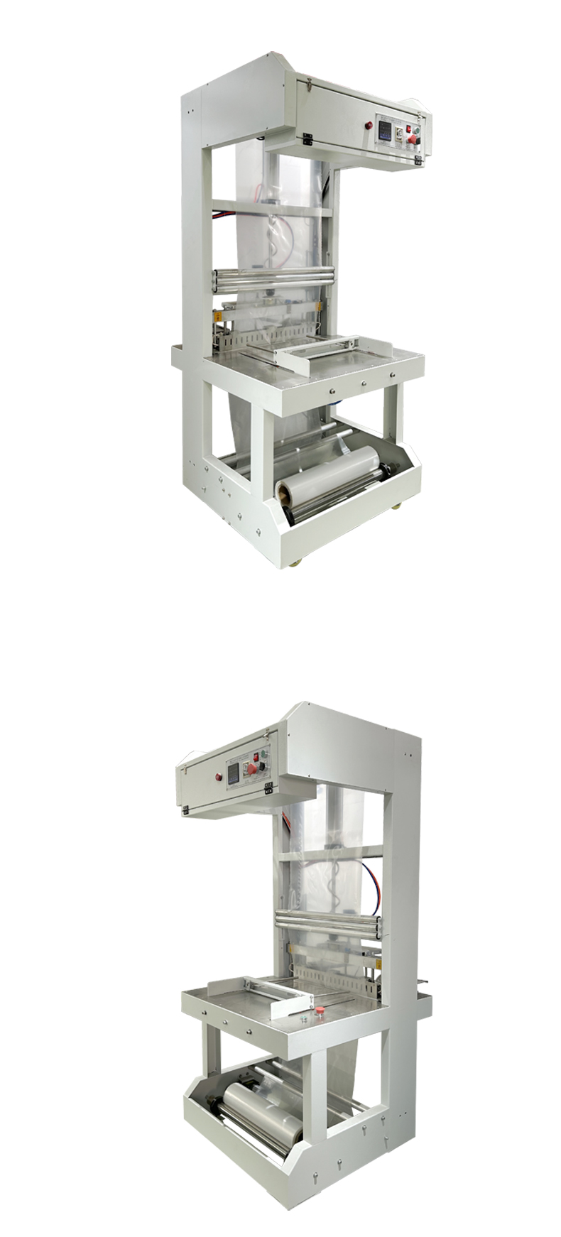 產(chǎn)品經(jīng)輸送帶進(jìn)入設(shè)備后,薄膜被自動(dòng)套在產(chǎn)品外部,通過電熱絲高溫封切形成袖口狀包裝,隨后進(jìn)入熱收縮通道,利用高溫使薄膜均勻收縮,緊貼產(chǎn)品表面,完成 “套膜 - 封切 - 熱收縮” 三步包裝流程。