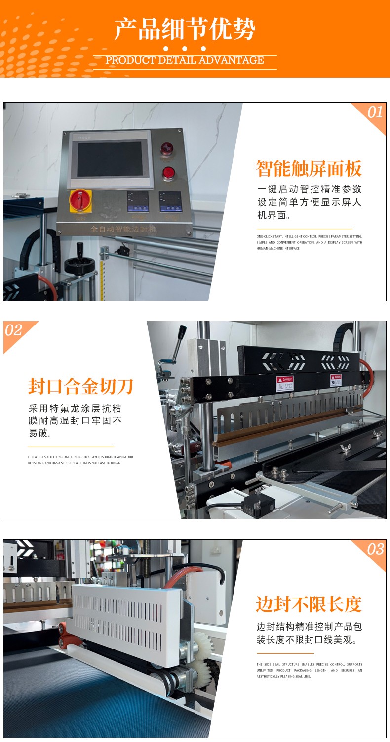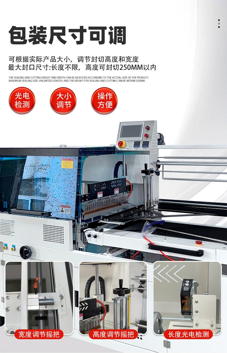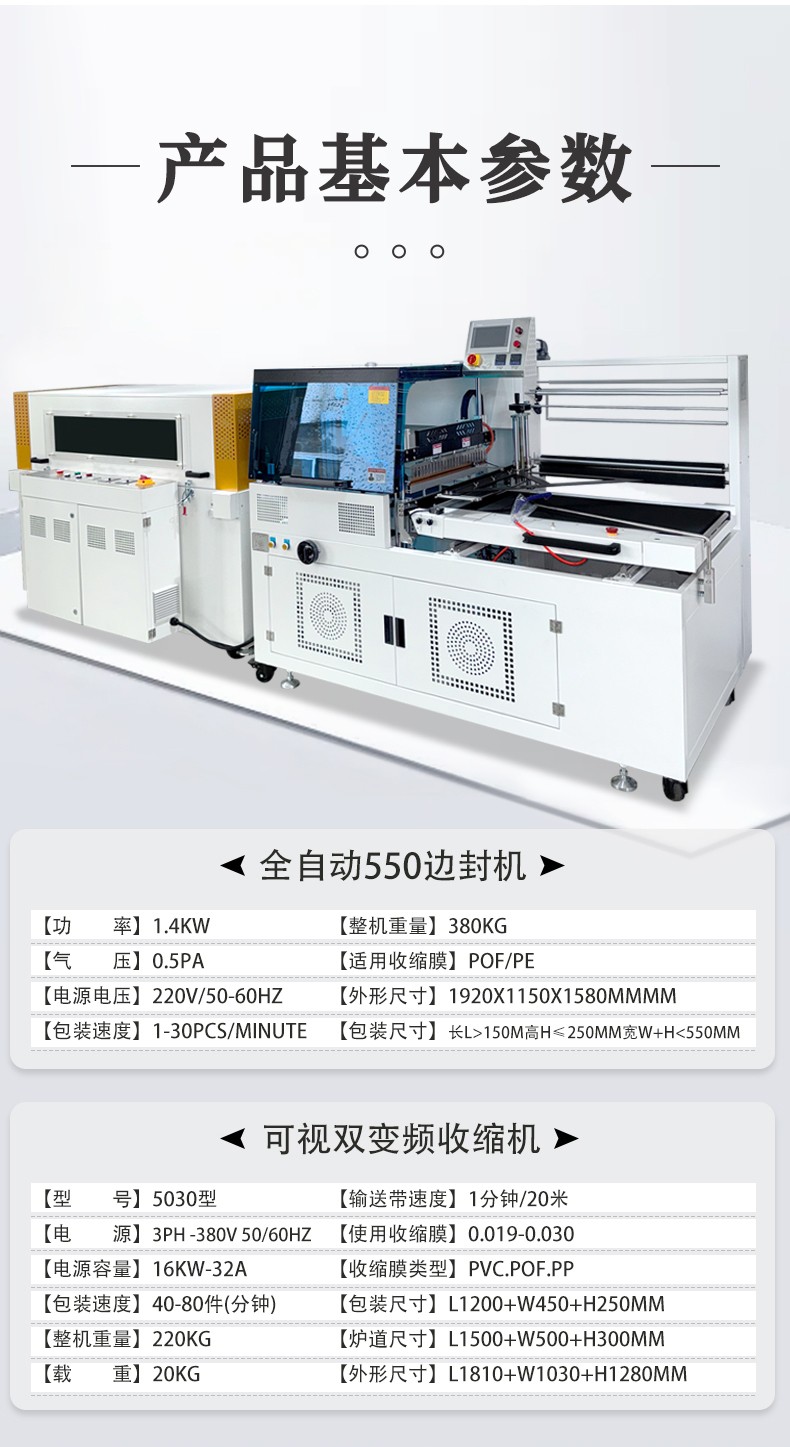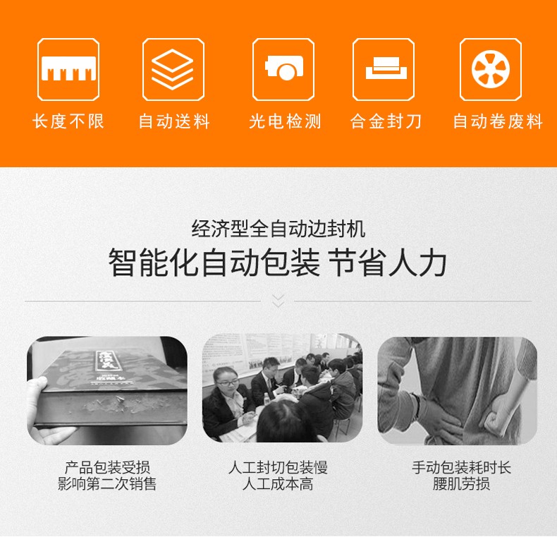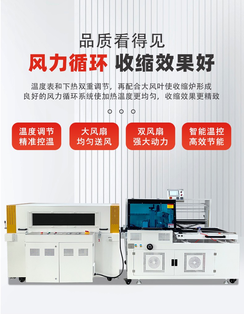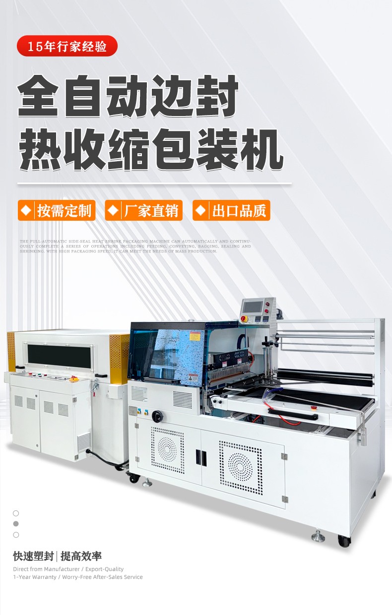 全自動(dòng)邊封熱收縮包裝機(jī)自動(dòng)化程度高,邊封設(shè)計(jì)使產(chǎn)品包裝長(zhǎng)度無限制