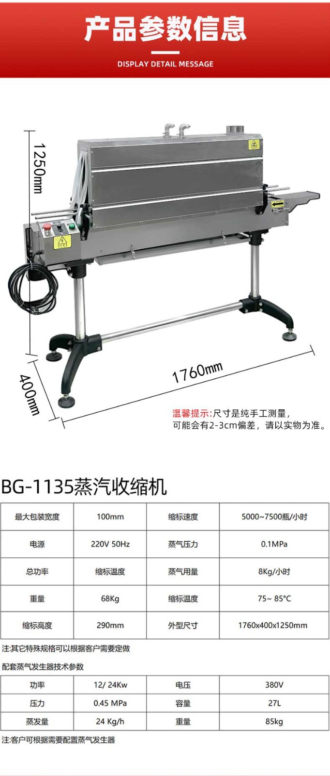 - 收縮通道:內(nèi)部設(shè)有蒸汽噴射孔或噴嘴,通道長度與寬度根據(jù)產(chǎn)品尺寸可調(diào),確保蒸汽均勻覆蓋。