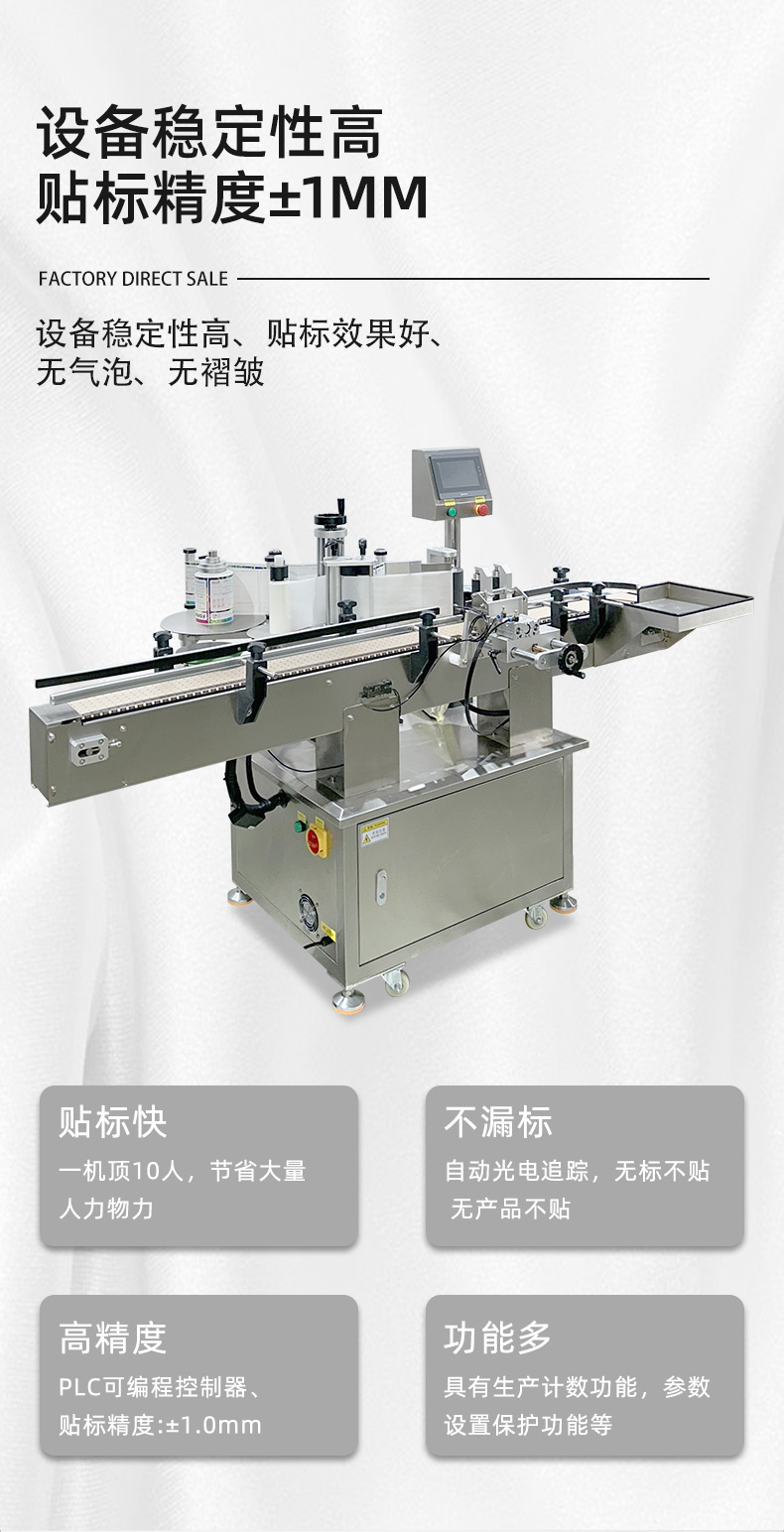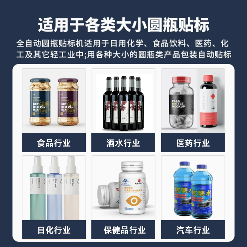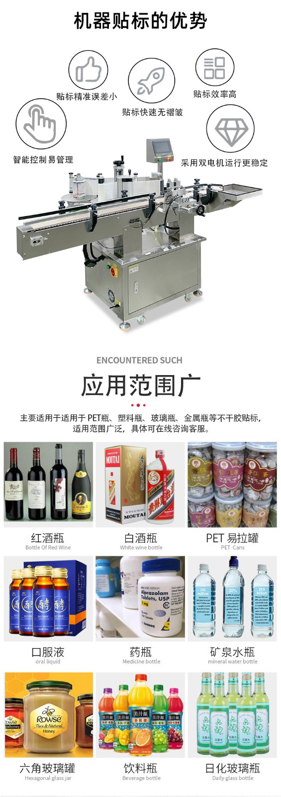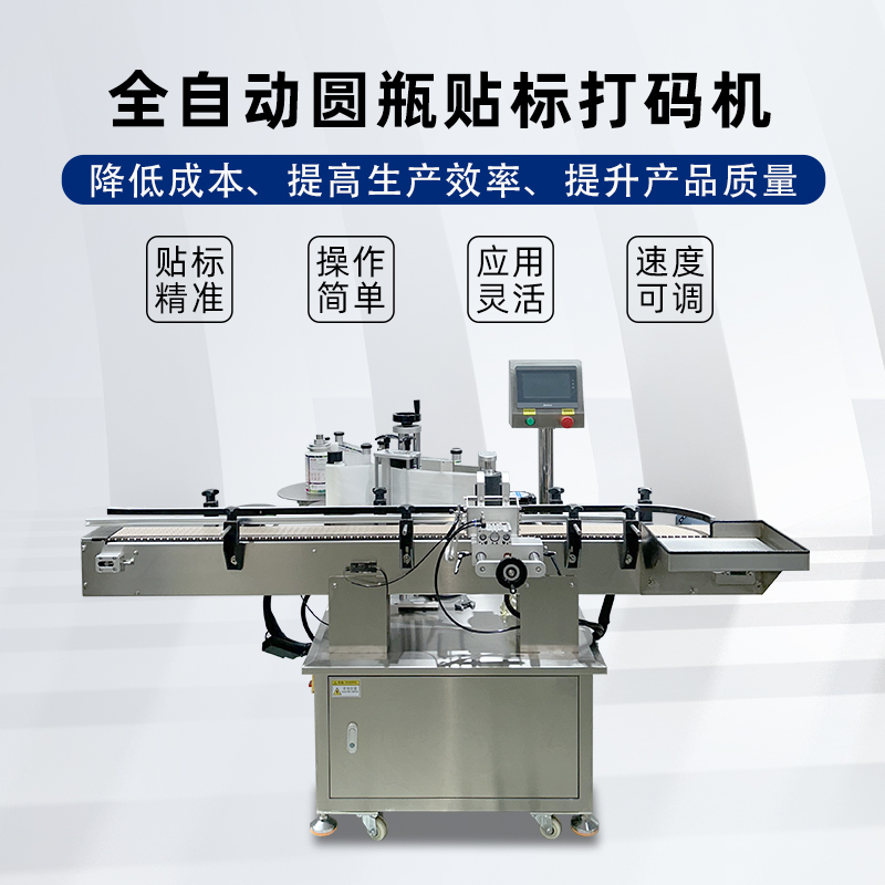 圓瓶類產(chǎn)品的貼標(biāo),可貼單標(biāo)和雙標(biāo),正背雙標(biāo)間距可靈活調(diào)整,部分機(jī)型還具備錐形瓶貼標(biāo)功能。精準(zhǔn)定位、高效智能、靈活兼容與合規(guī)耐用,可顯著提升產(chǎn)線自動化與貼標(biāo)良率。